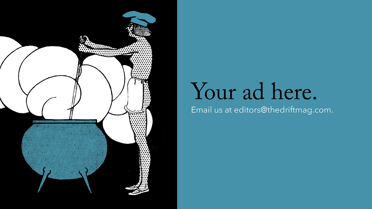 Schurman Wallace’s essay isn’t just a helpfully comprehensive look back at a fading star. It’s an astute — and entertaining — analysis of the major currents in poetry today, and the aesthetics of online culture. (I’ll think about modernism, and the internet, differently after reading about “the chronic meme-ability of William Carlos Williams’s ‘This Is Just to Say,’ tortured in its too-transmissible afterlife.”) I encountered this essay soon before I joined the staff of The Drift, and it’s remained for me something of a standard for what our criticism can achieve by leveraging the closest of close reading to think through some of the biggest questions of how culture is changing.