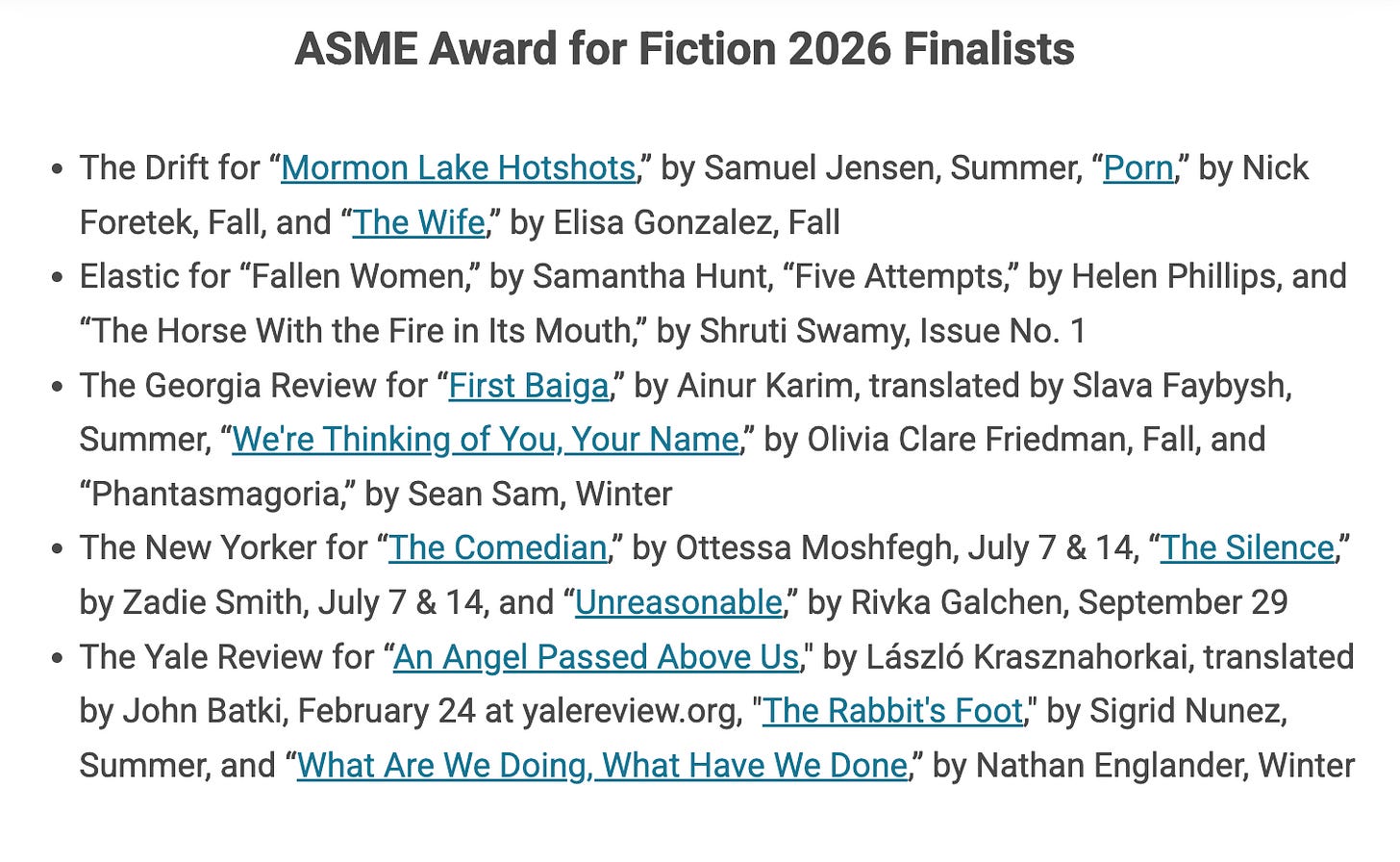 We’re thrilled to have our fiction recognized by the National Magazine Awards: